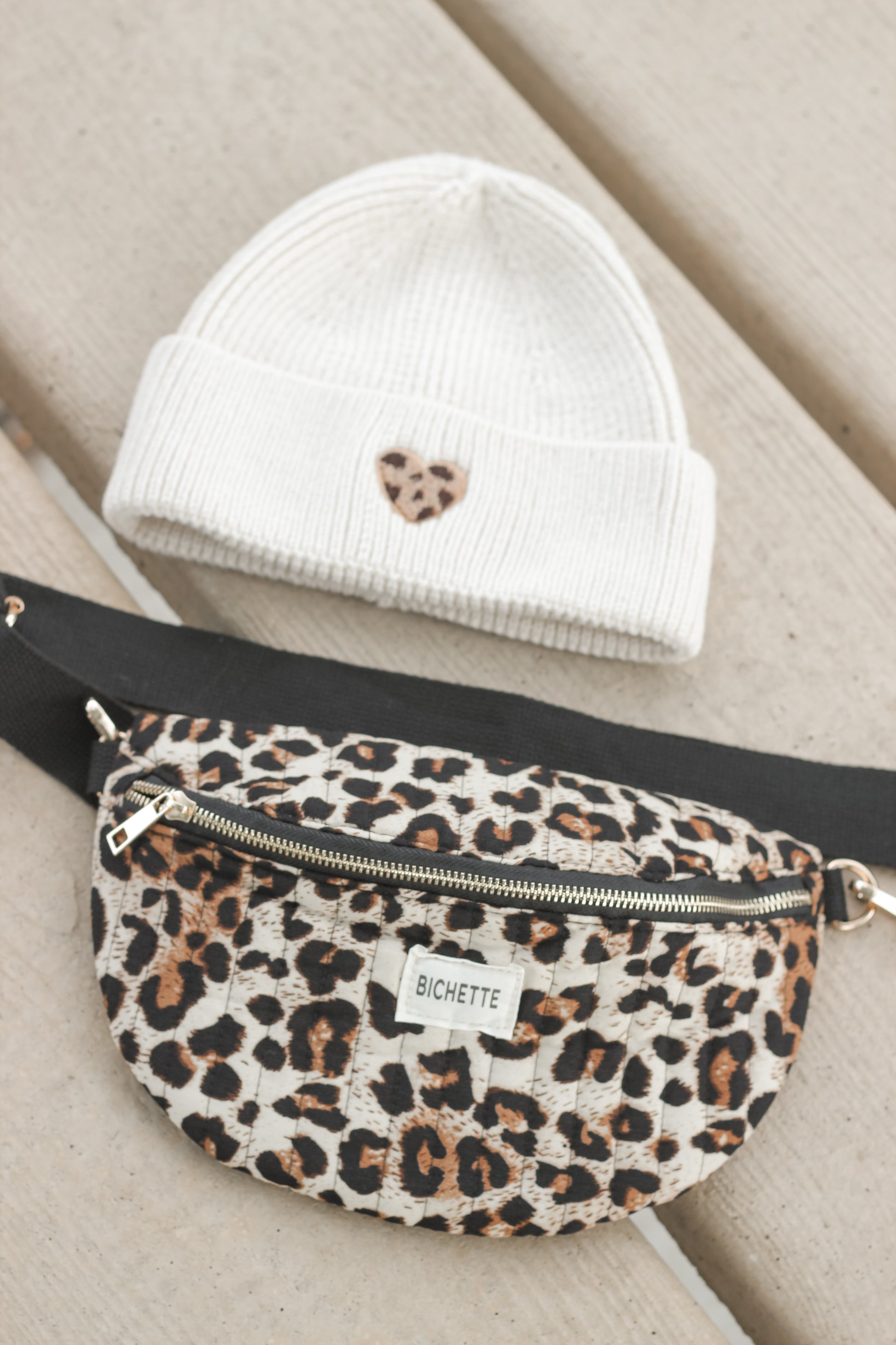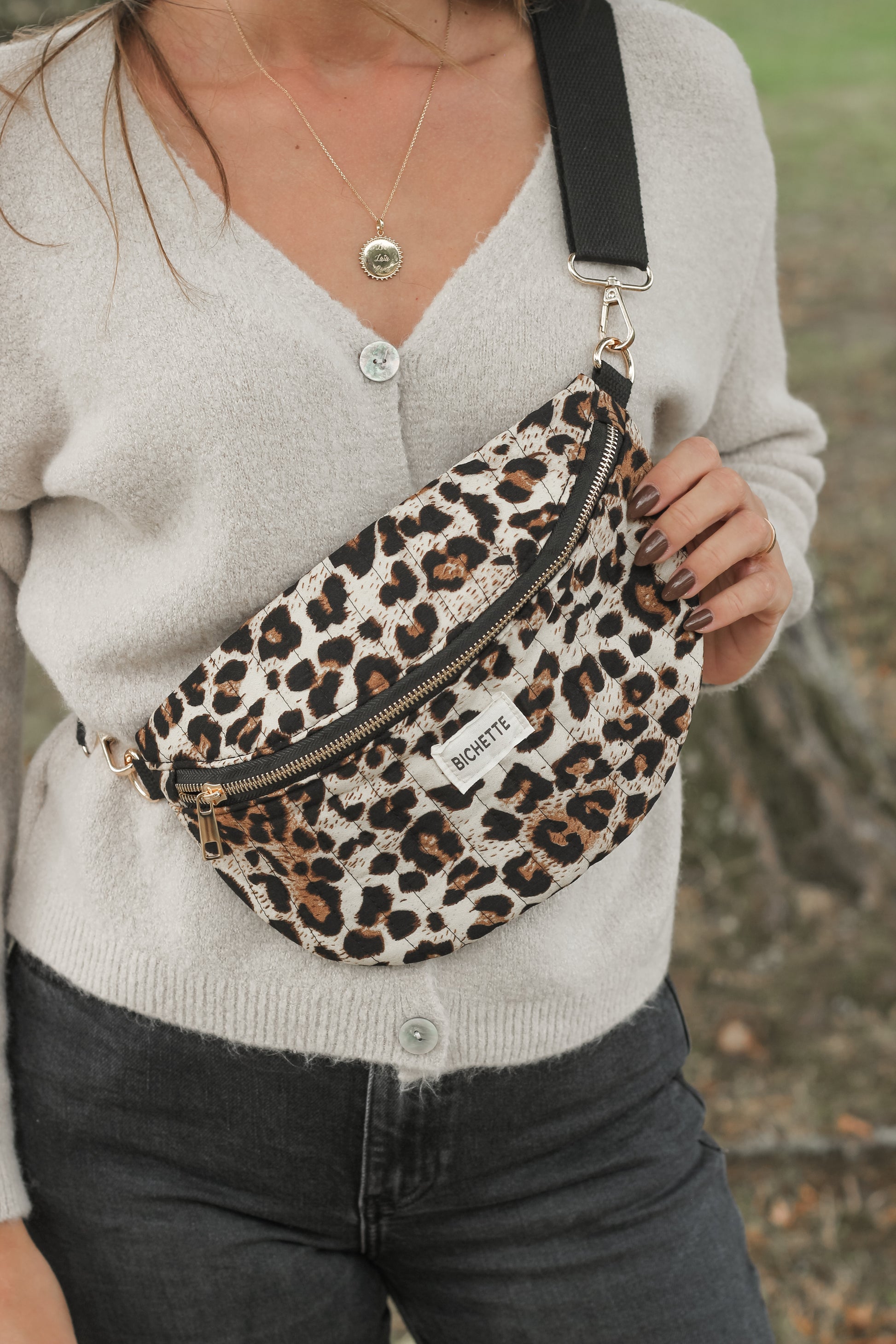 Sac banane épaule avec inscription Bichette, parfait pour avoir tout à porter de mains.
