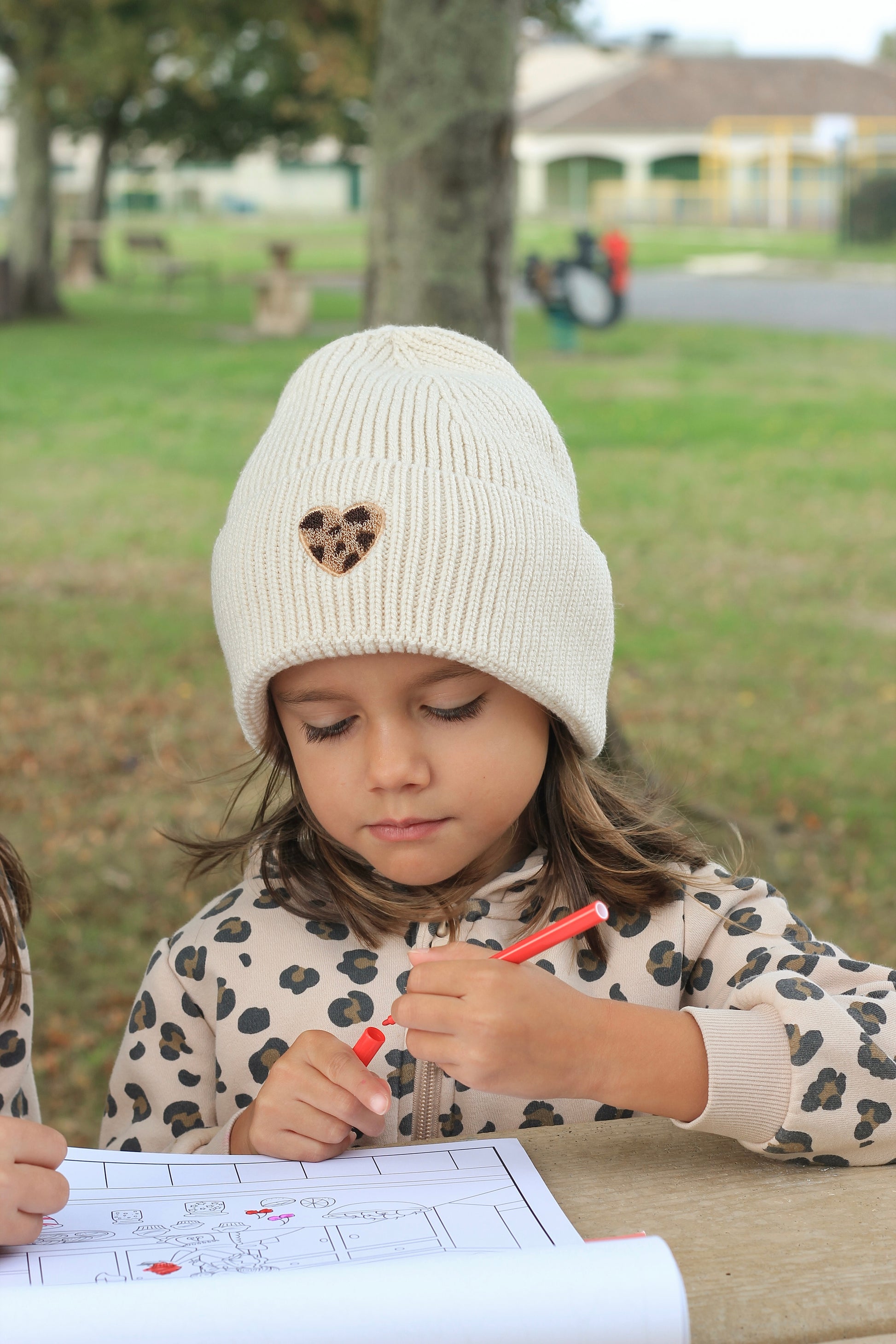 Bonnet ENFANT coeur léopard - Ecru