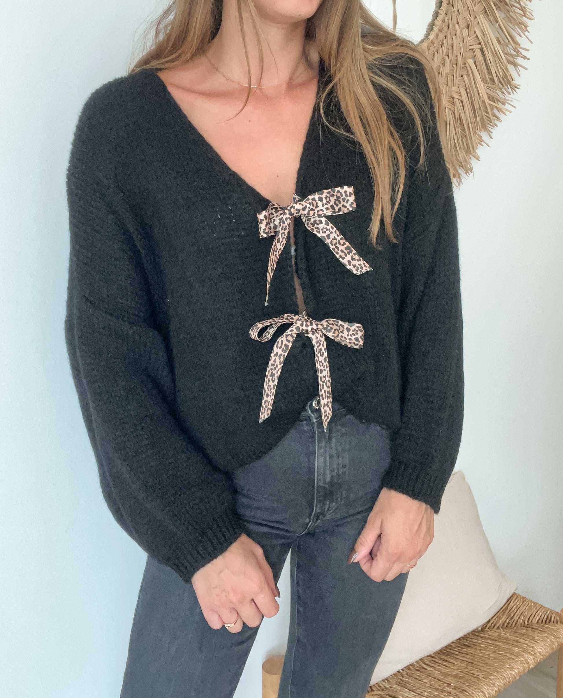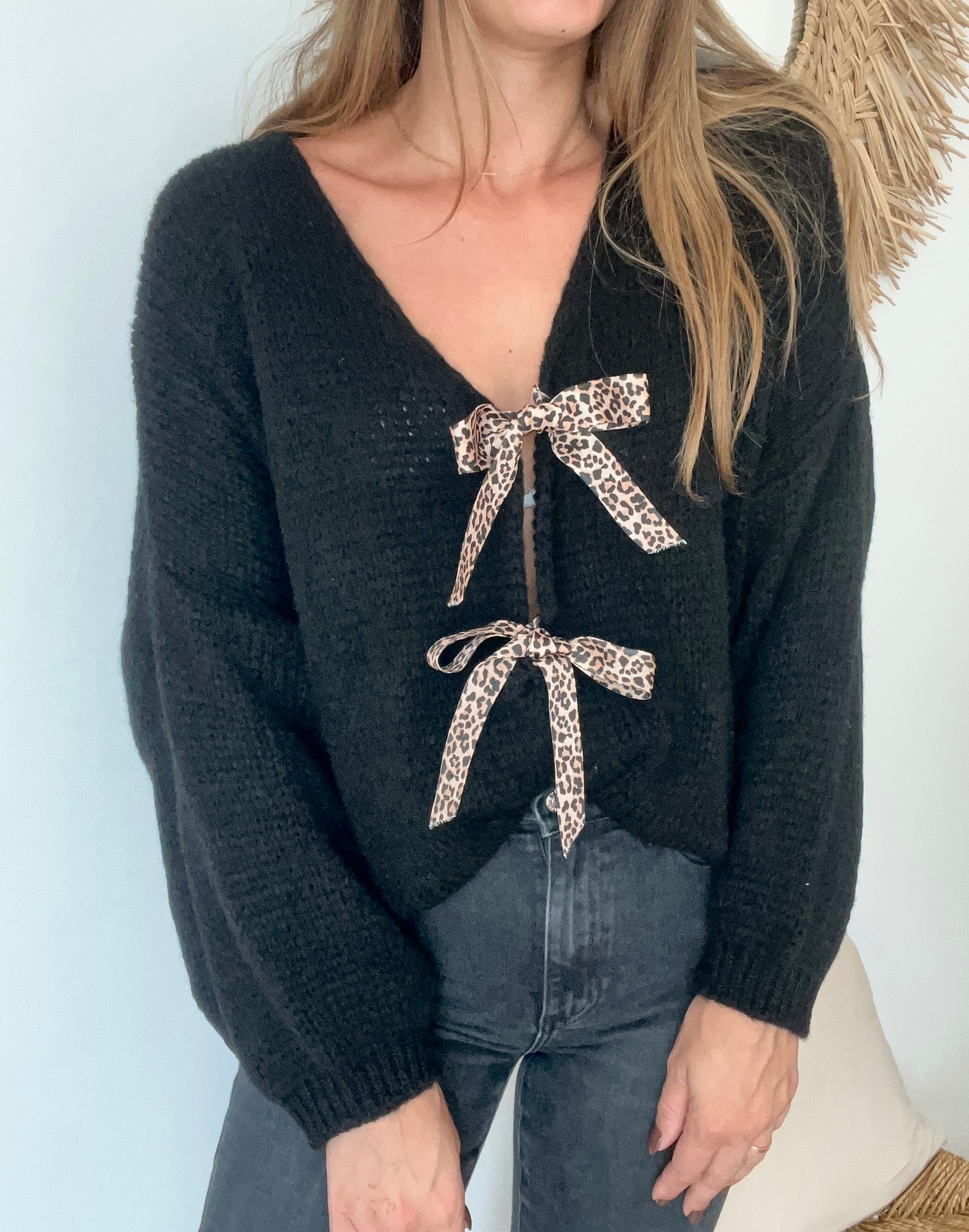 - Gilet blanc tout doux avec ses noeuds léopard. Parfait pour l'automne-hiver.